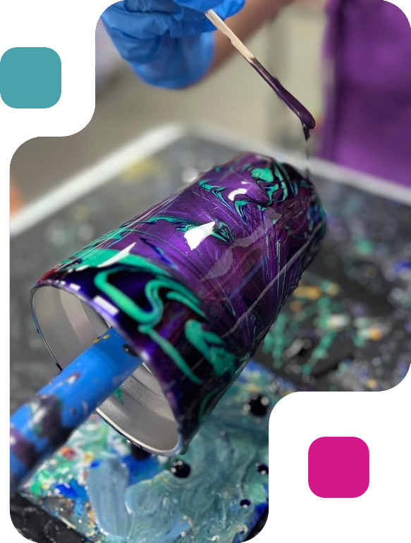 Take your corporate event to the next level with our Resin Tumbler Experience. This engaging and interactive activity allows team members to create personalized resin tumblers, perfect for daily use or as unique keepsakes. Our temperature-controlled studios provide a comfortable setting, and our non-toxic, high-quality materials ensure a safe and enjoyable experience for all participants. Guided by our expert instructors, your team will learn the art of resin pouring and swirling, resulting in stunning, functional pieces of art.